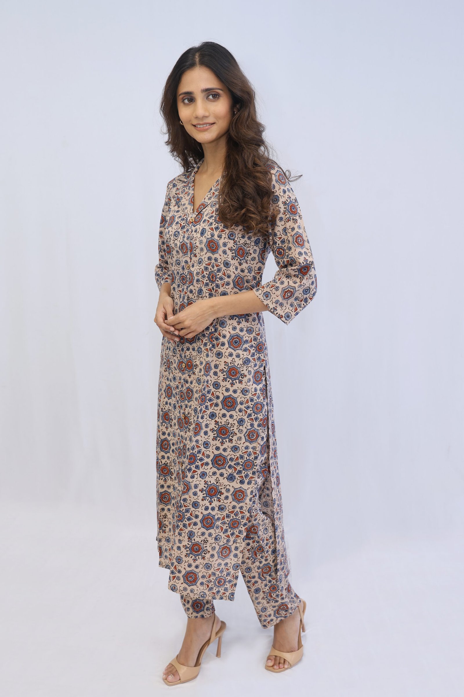 Pure Ajrakh hand block printed Kurta pant set. Jaipuri hand block work crafted on soft breathable linen material. Quantity -2 kurta pant set